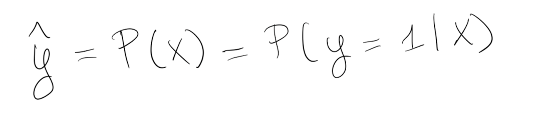 The prediction $\hat{y}$ (0 or 1) is determined by the probability of a real $y$ given factors $X$: